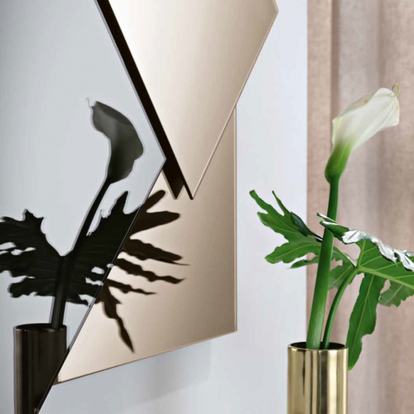 Le miroir MIND n’est pas seulement un accessoire, mais une véritable œuvre d’art qui met en valeur n’importe quel espace. Les nuances de bronze et de fumé se mélangent harmonieusement, offrant une combinaison de couleurs chaudes et raffinées qui s'adaptent parfaitement à tout style de mobilier, du moderne au classique.