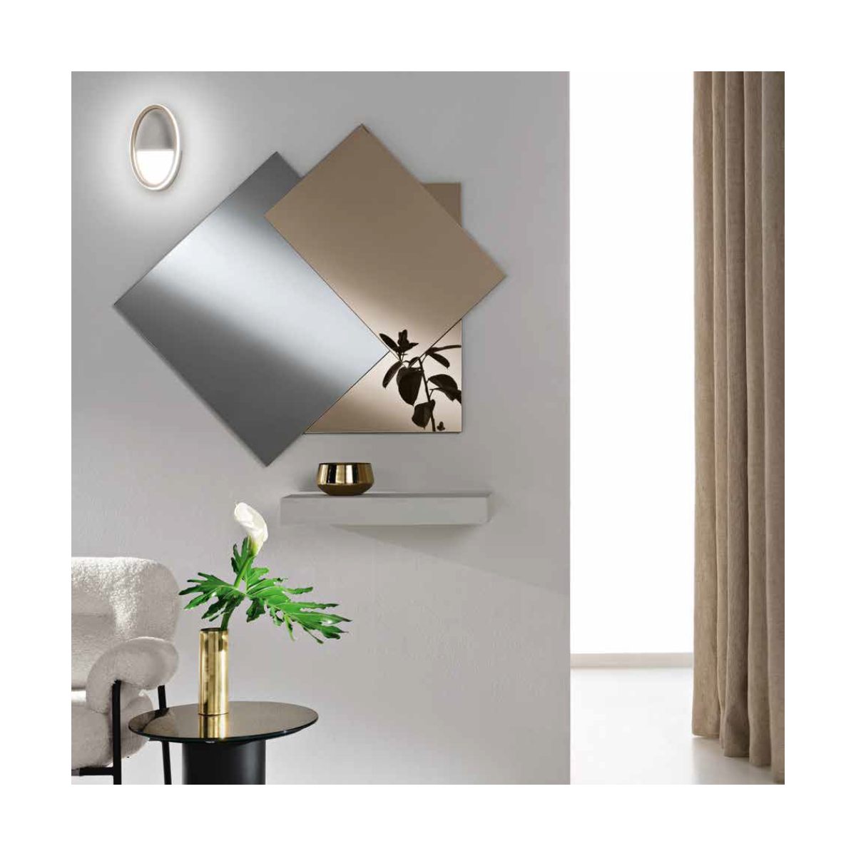 Disponible en deux tailles, 122 x 110 cm et 160 x 138 cm, le miroir MIND est polyvalent et peut être placé dans différentes pièces de la maison, comme l'entrée, le salon, la chambre ou la salle à manger. Sa taille généreuse et son design unique en font un point focal capable de capter l’attention et d’ajouter de la profondeur visuelle à l’environnement.