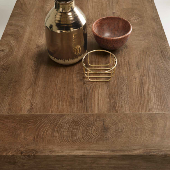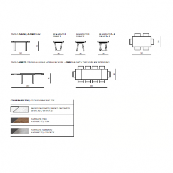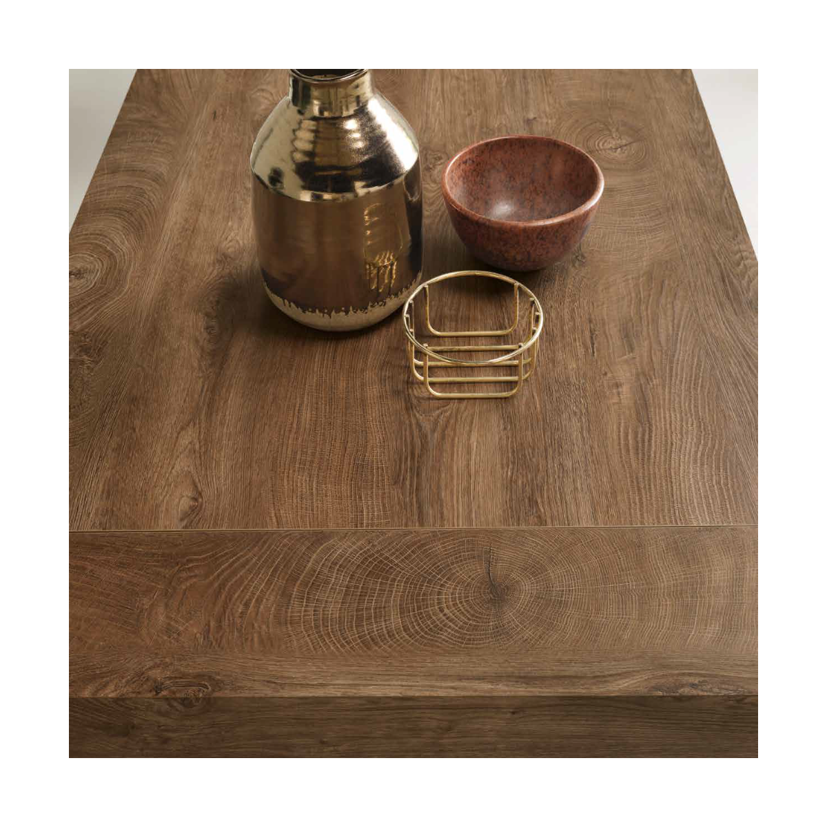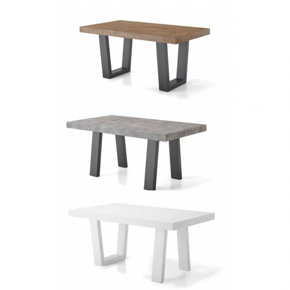 Table extensible avec structure, plateau et rallonges en stratifié effet bois. Deux rallonges latérales de 50 cm. La disposition des pieds peut être modifiée pour obtenir différentes configurations. Disponible en différentes couleurs.
