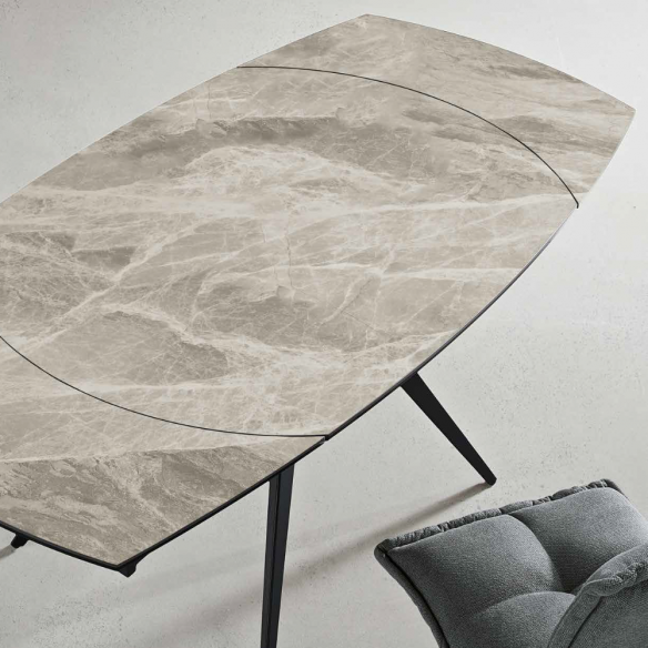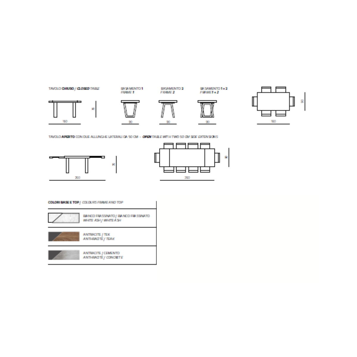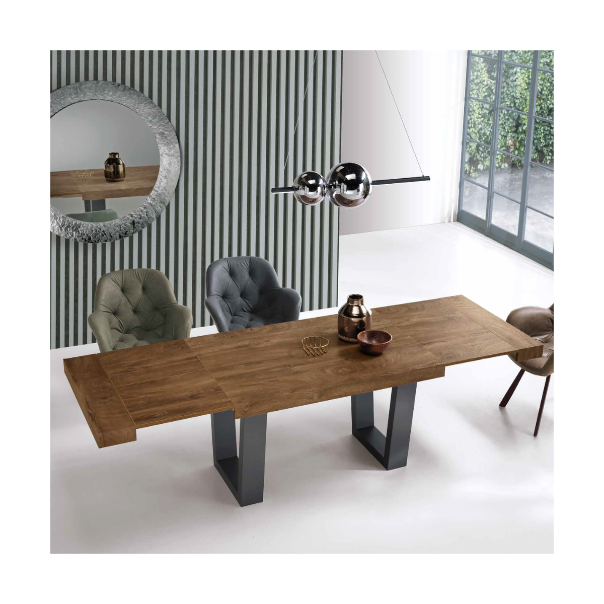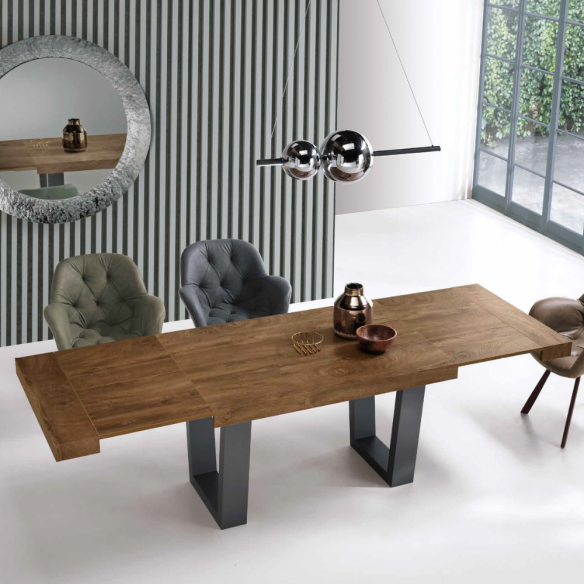 - Mécanisme d'extension : La table est équipée d'un système d'extension qui comprend deux extensions latérales de 50 cm chacune, permettant d'étendre la table pour accueillir plus de personnes.
