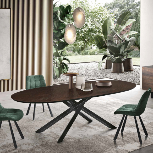 Les dimensions généreuses de la table RON offrent suffisamment d'espace pour les dîners de famille, les réunions sociales ou les réunions d'affaires, ce qui en fait un choix polyvalent pour tous les besoins. La forme ovale encourage la conversation et l’interaction, créant un environnement accueillant et convivial.
