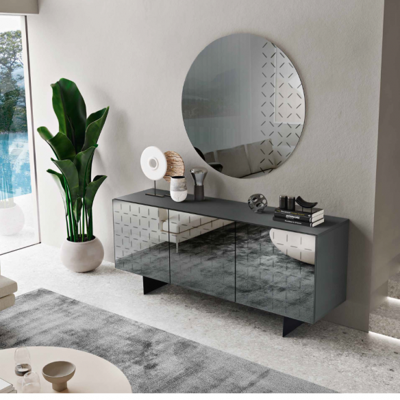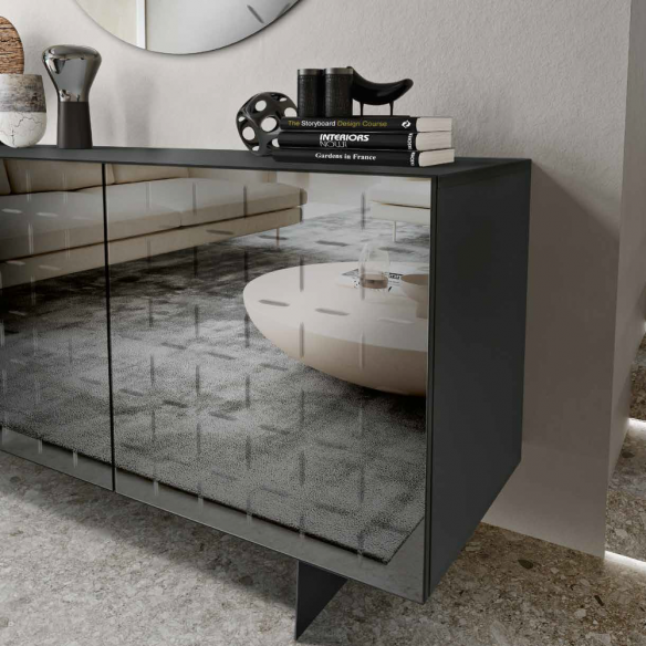 Buffet Cassia avec corps laminé et portes en miroir gravées - Capodarte