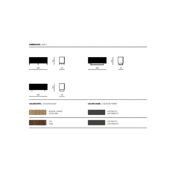 Ce buffet est doté d'un corps en mélamine anthracite et de portes en MDF, le tout soutenu par une base robuste en métal peint en noir disponible en trois modèles différents. Son design raffiné et ses matériaux de haute qualité le rendent idéal pour ajouter une touche de classe à n'importe quel environnement.