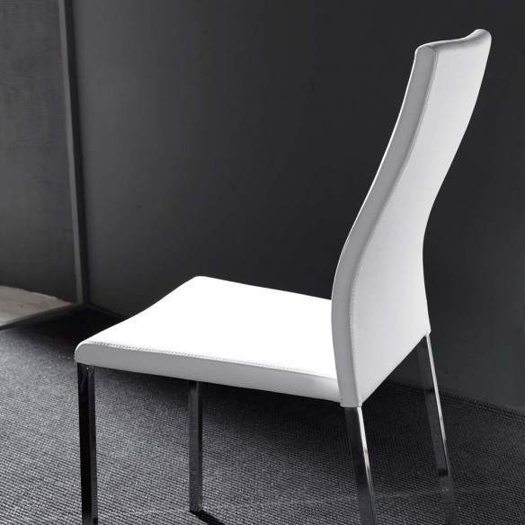 Chair Design with its clean, essential with internal structure in tubular metal and wood, padded and covered in eco-leather, will fit a variety of configurations and environments, thanks to its clean lines. STRUCTURE: - metal: chrome - painted color - coated leather solid SEAT: faux leather: white - black - taupe-soft - grey titanium