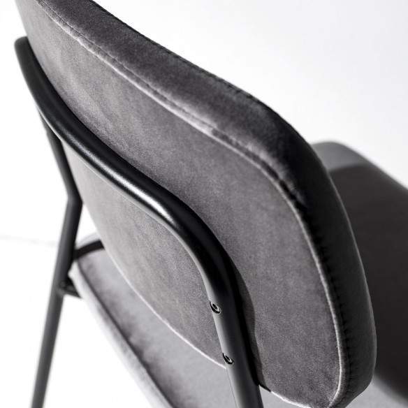 Avec ses lignes épurées et essentielles, cette chaise incarne l'élégance contemporaine, offrant un équilibre parfait entre forme et fonctionnalité. La structure en métal noir poli ou en laiton, fabriquée avec des matériaux de haute qualité et un savoir-faire italien, assure une solidité et une durabilité inégalées, tandis que le siège en velours résistant aux taches ajoute une touche de luxe et de confort suprême.
