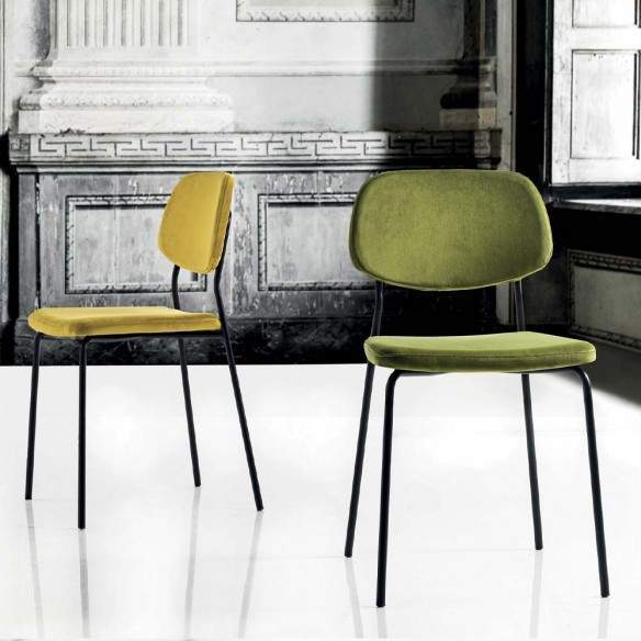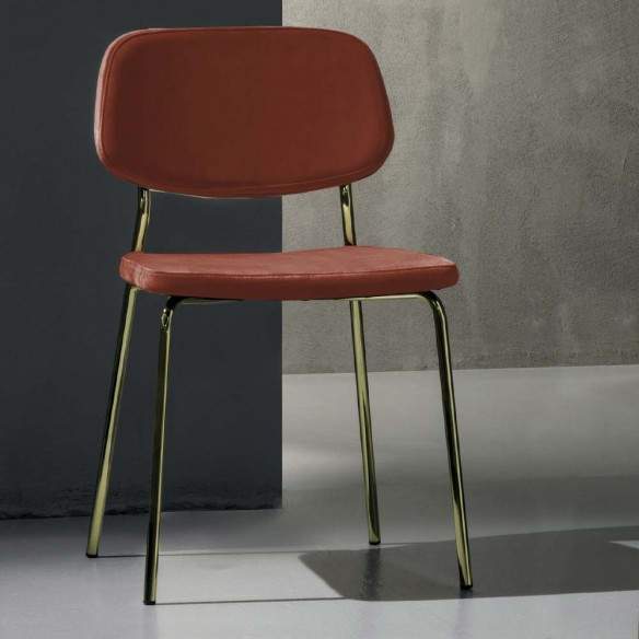 Chaise GINGER Art. 217 La Chaise est une chaise au style essentiel, caractérisée par des lignes épurées et élégantes. Avec une structure en métal noir ou en laiton poli avec bain galvanique (MADE IN ITALY) et une assise en velours antitache, il est également parfait pour les activités contractuelles et s'adapte à de nombreux types d'environnements.