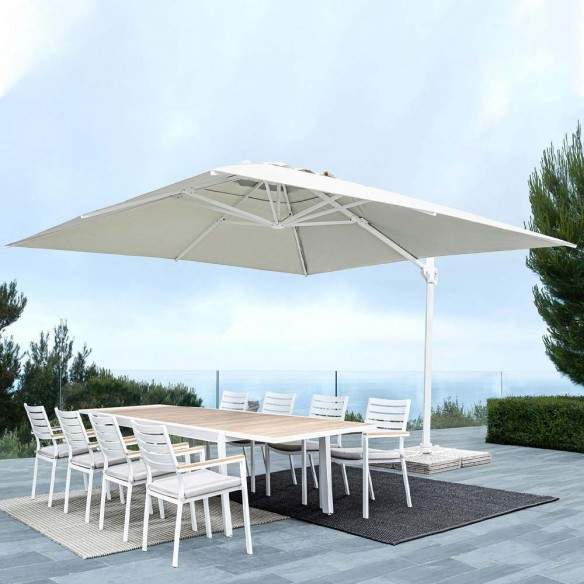 Le parapluie Tremiti de la seggiola est entièrement réalisé en aluminium avec une ouverture à manivelle qui permet une rotation à 360°, il est également équipé d'un système de réglage de l'inclinaison.