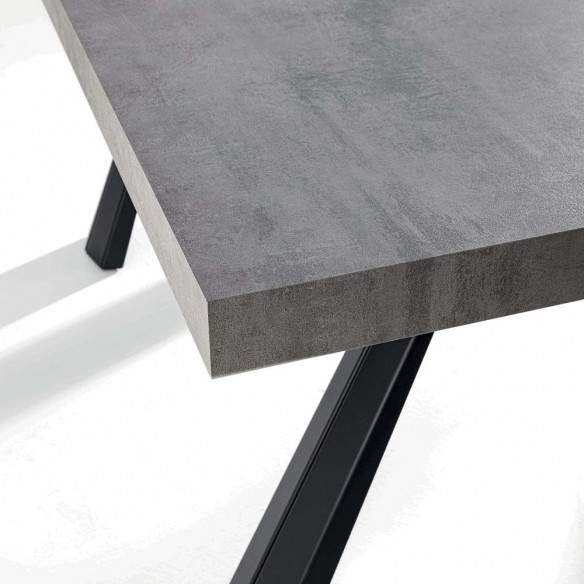 Plateau large et polyvalent : Le plateau de la table est disponible en deux finitions : mélaminé finition ciment ou mélaminé chêne noué. Cela rend la table adaptée à une variété d'environnements et de styles d'ameublement.