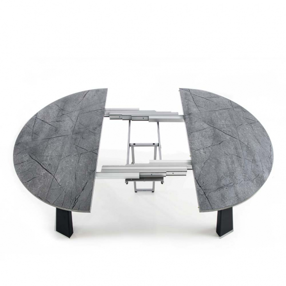 Il est livré avec 2 rallonges de 50 cm chacune, qui permettent d'étendre la table jusqu'à une longueur totale de 220 cm lorsqu'elle est complètement ouverte.