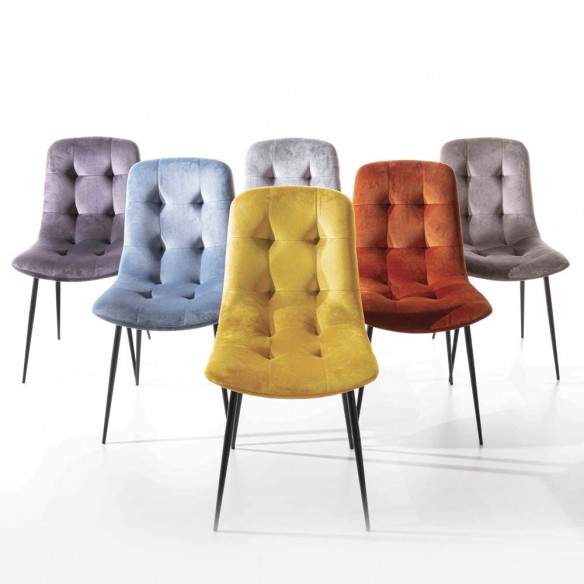 La chaise Zara de La Seggiola allie design moderne et confort pour créer une atmosphère unique dans votre maison. La structure en métal peint en noir offre solidité et stabilité, tandis que le revêtement en velours résistant aux taches est disponible en six couleurs attrayantes :