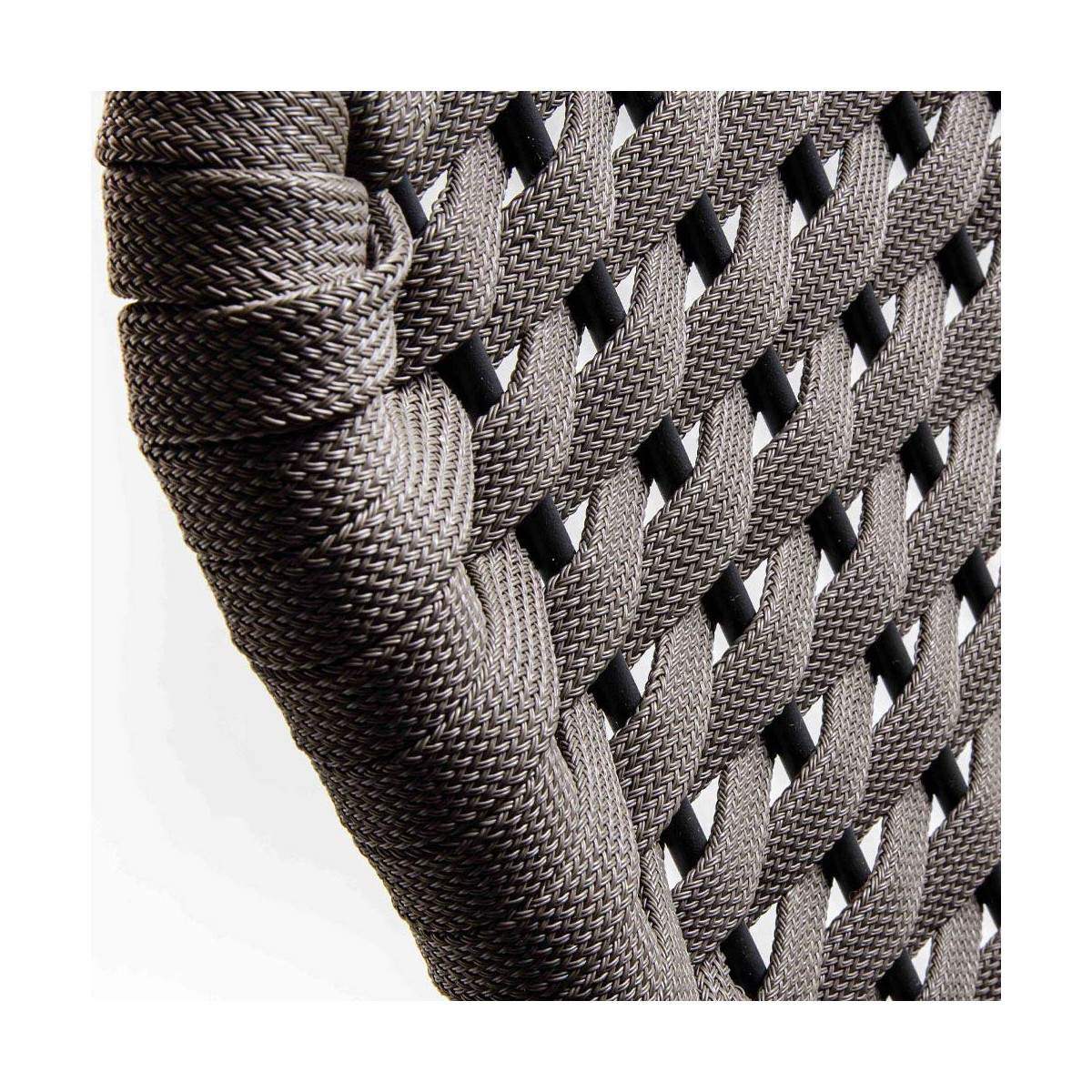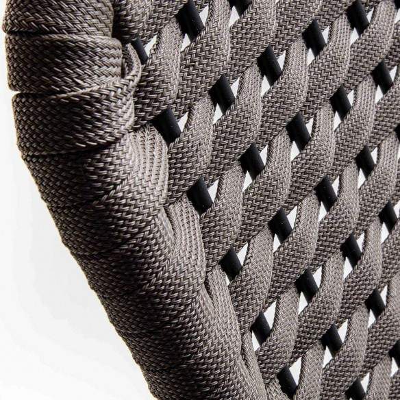 Dossier en corde tressée finition gris tourterelle : un élément distinctif qui allie esthétique et confort, pour un soutien ergonomique et raffiné.