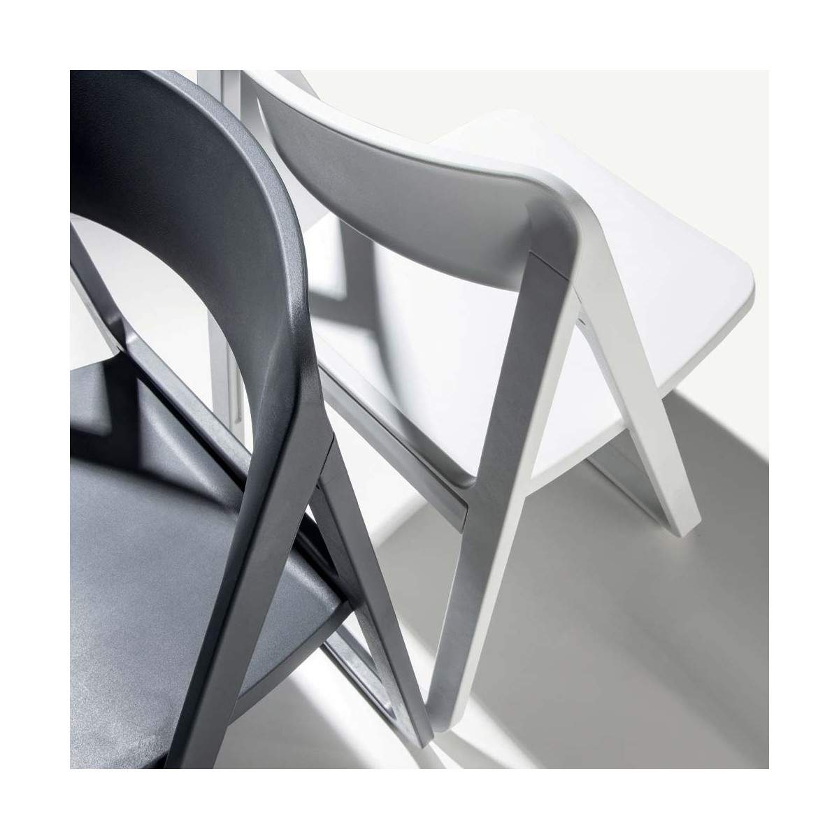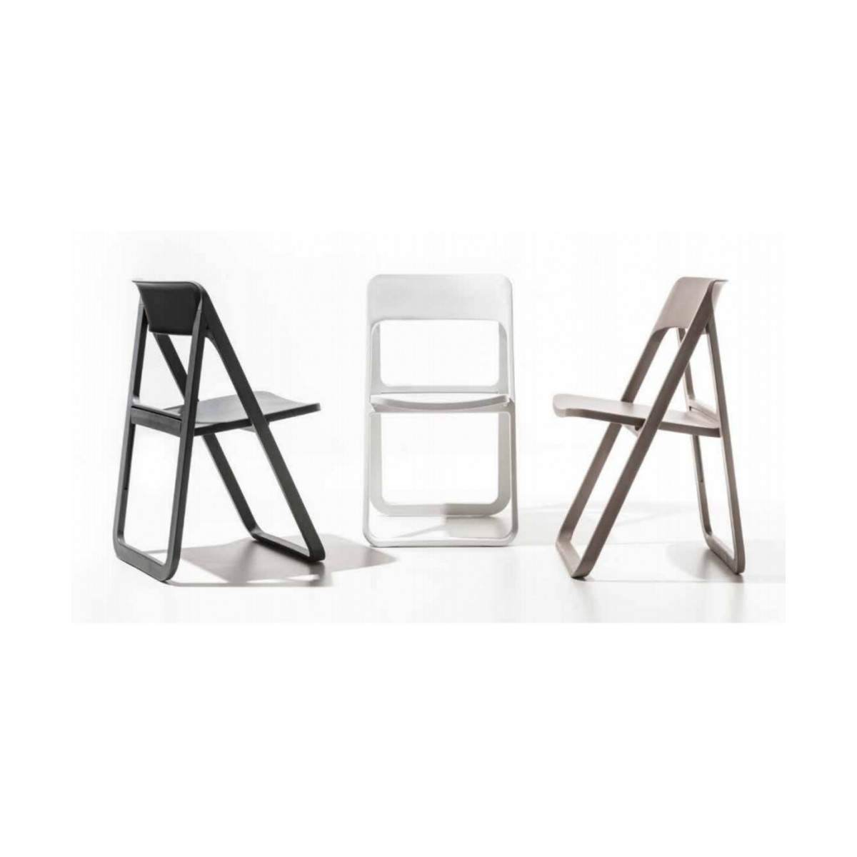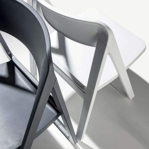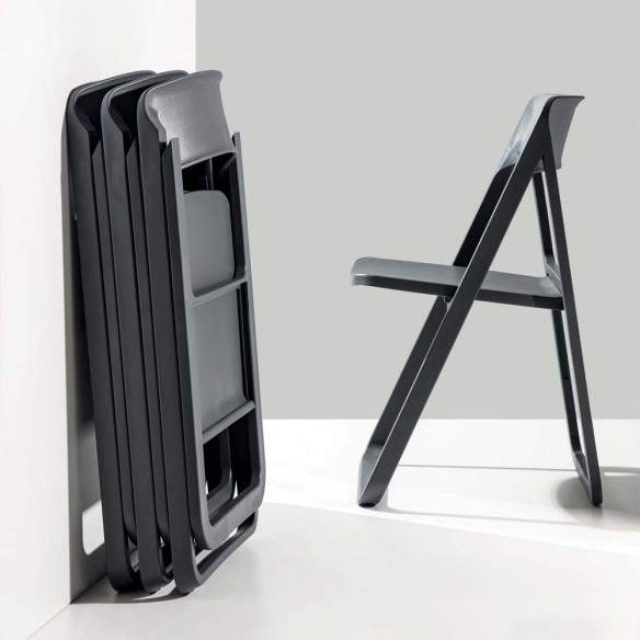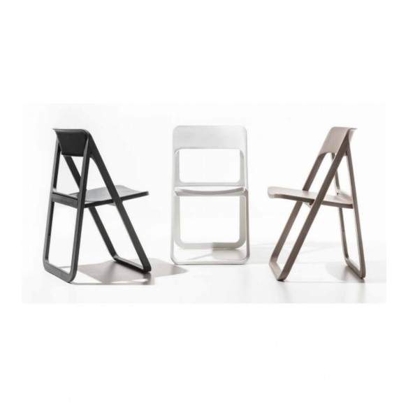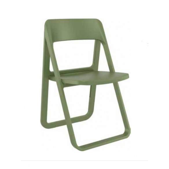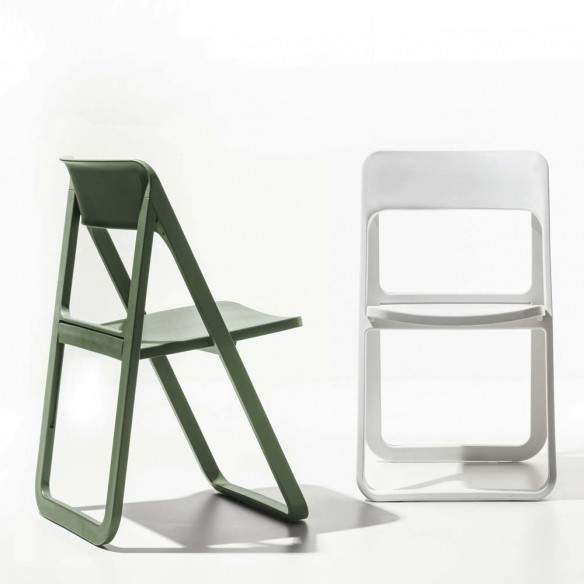Chaise pliante Dreen de La Seggiola entièrement en polypropylène en 4 couleurs différentes : blanc, anthracite, sable et vert. Robuste et confortable, il convient également à une utilisation en extérieur. En option, il est possible de choisir le crochet mural (ART. 481 / G) pour 3 pièces ou le chariot (ART. 481 / CA) pour 6 pièces.