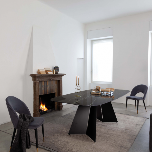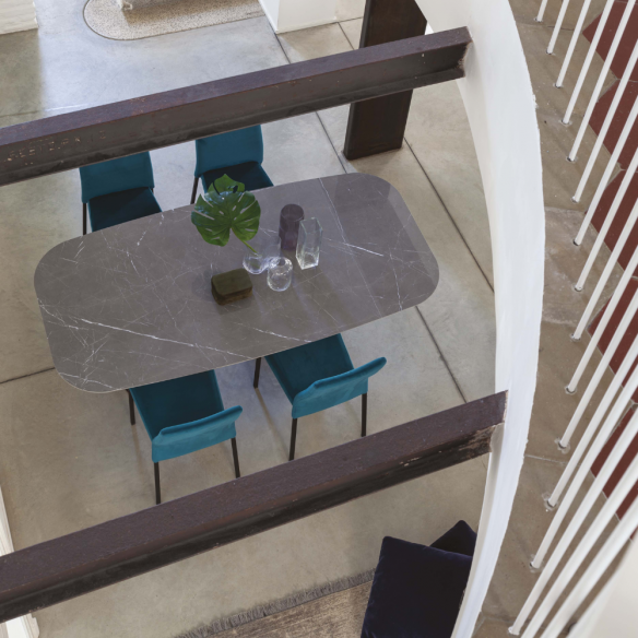 Le plateau en céramique en forme de tonneau est le véritable protagoniste de cette table : sophistiqué et résistant , il allie l'esthétique raffinée de la céramique à la praticité d'un matériau très résistant et facile à nettoyer. La forme raffinée et ergonomique donne une touche d'exclusivité, faisant de la table EMPIRE PLUS le choix idéal pour mettre en valeur aussi bien les environnements domestiques que les espaces représentatifs.
