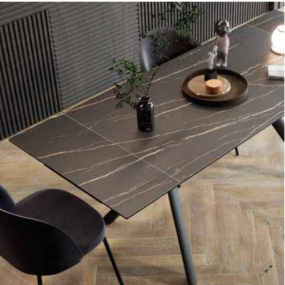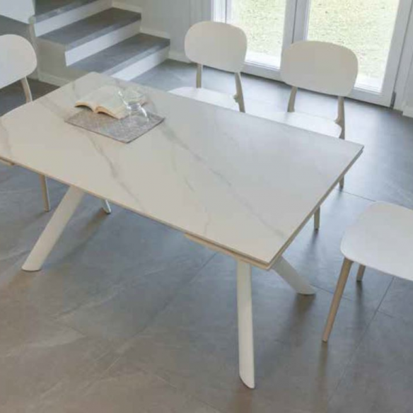 VERSUS extendable table with painted metal frame and ceramic stoneware top.