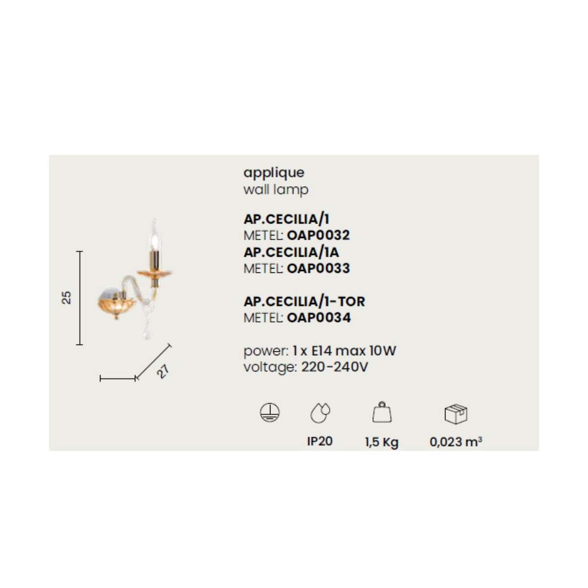 Lampada a parete CECILIA - Ondaluce